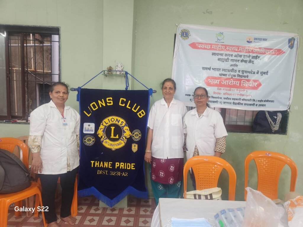 Lions Club of Thane Pride in collaboration with Samarth Bharat Vyaspeeth, Sahyadri Manav Seva Manch and United Way successfully organized a Medical Check-up camp at Mahim Koliwada, Mumbai. This camp provided essential health services to the local community. Total 150 beneficiaries availed medical consultation and health check-up.