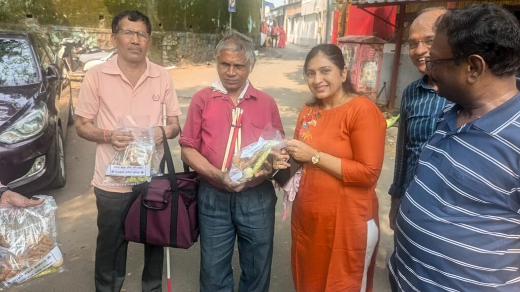 Distributed 100 packets of Diwali faral to beggars and visually challenged people.