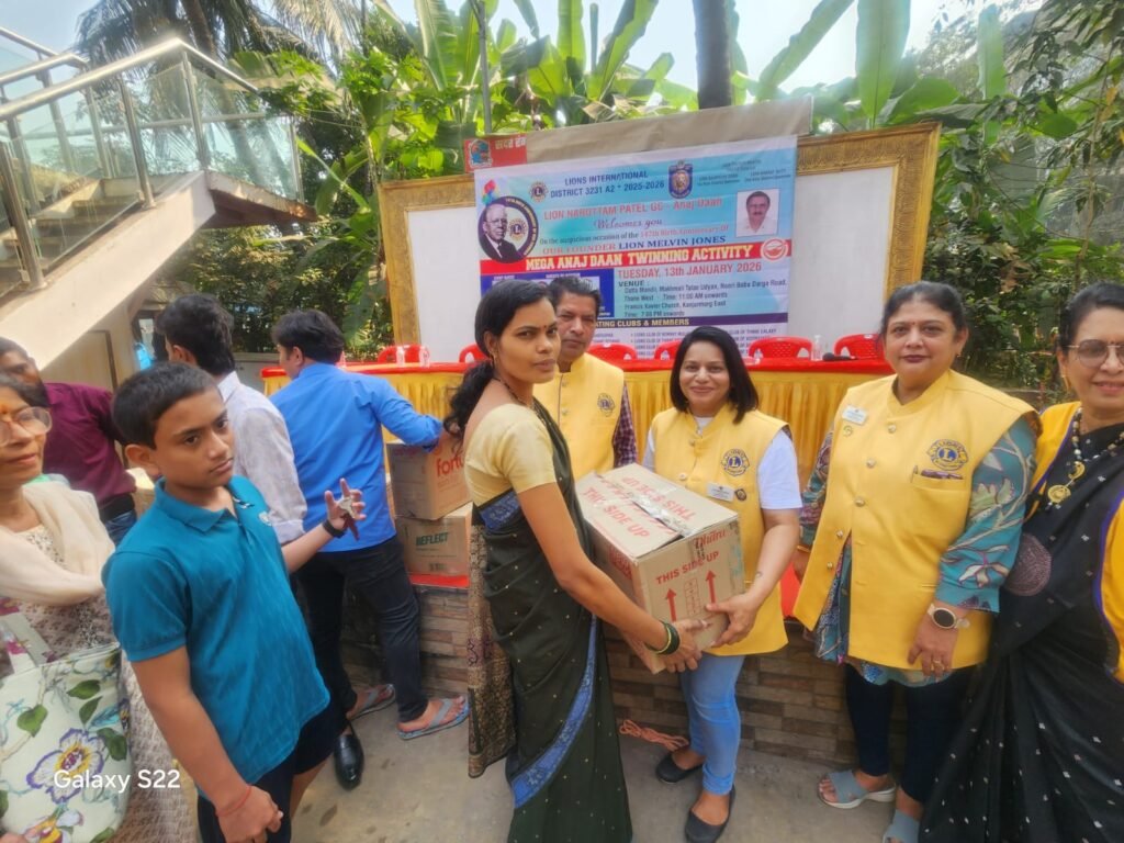 Mega anaj daan activity was organized under the leadership of Lion Narottam Patel (Governing Council Anaj Daan) on the occassion of the 147th Birth Anniversary of Lion Melvin Jones, Founder of Lions International. This activity was graced by presence of District Governor Lion Trevor Martis (Chief Guest), 1st VDG Lion Rajendra Shah, Cabinet Secretary Lion Jude Lobo and Executive Cabinet Secretary Lion Sukumar Sakhardande, Lion Devratan Daga (DC – Childhood Cancer), President Lion Neha Shinde and other dignitaries and Lion Members from other clubs.
